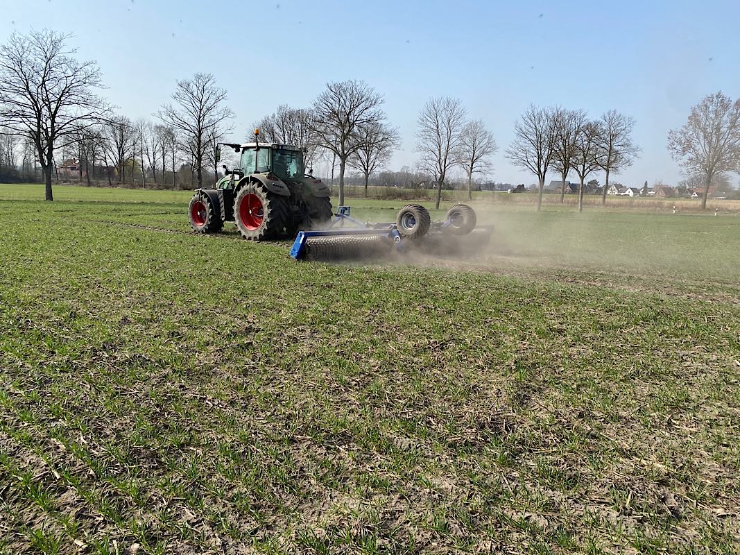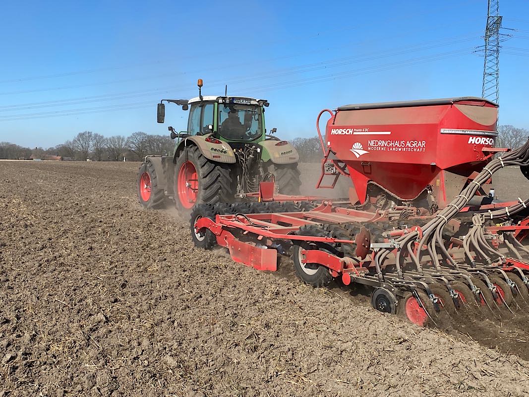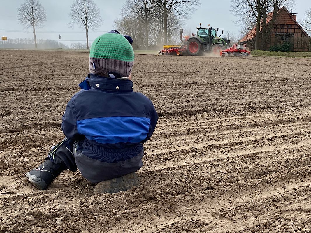 In der Außenwirtschaft hat sich in den letzten Wochen einiges getan. Im Februar haben wir die Hecken und Kopfweiden an den Feldern geschnitten. Unter optimalen Bedingungen konnten wir dann Anfang März die Ackerbohnen aussäen und den organischen Dünger zu Getreide und Raps ausbringen. Anstehenden Bodenbearbeitung sowie Pflanzenschutz- und Düngemaßnahmen wurden auf zwei Feldbegehungen mit den Beratern der Landwirtschaftskammer besprochen und im Nachgang durch Daniel, Markus und Norwick ausgeführt. Auch die letzten Zuckerrüben sind in der vergangenen Woche ausgesät worden. Jetzt hoffen wir auf Regen, denn aktuell ist es viel zu trocken.